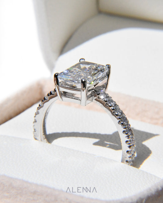 Anillo de Compromiso Violeta con Diamante Corte Radiante