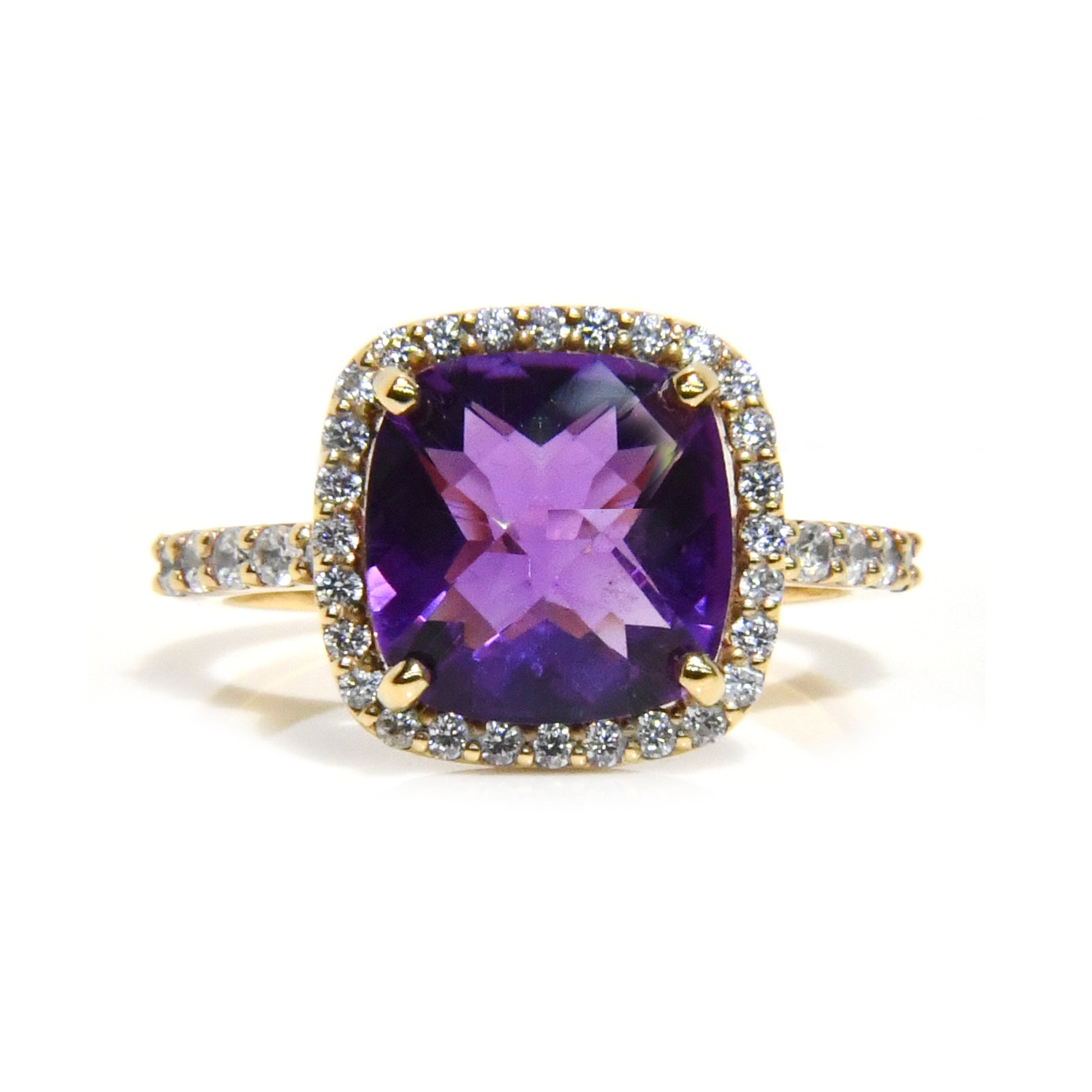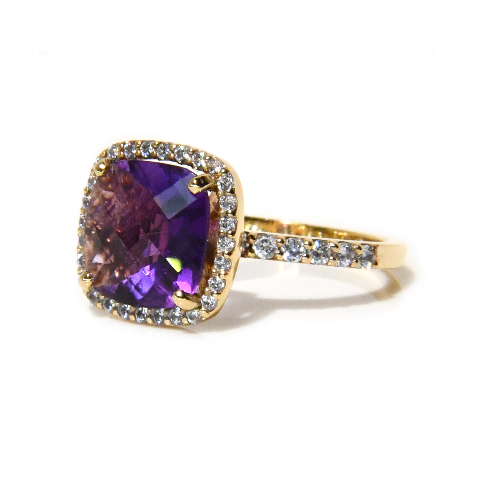 Anillo Anastasia con Amatista Cushion de 3.5cts y .64cts de Diamantes