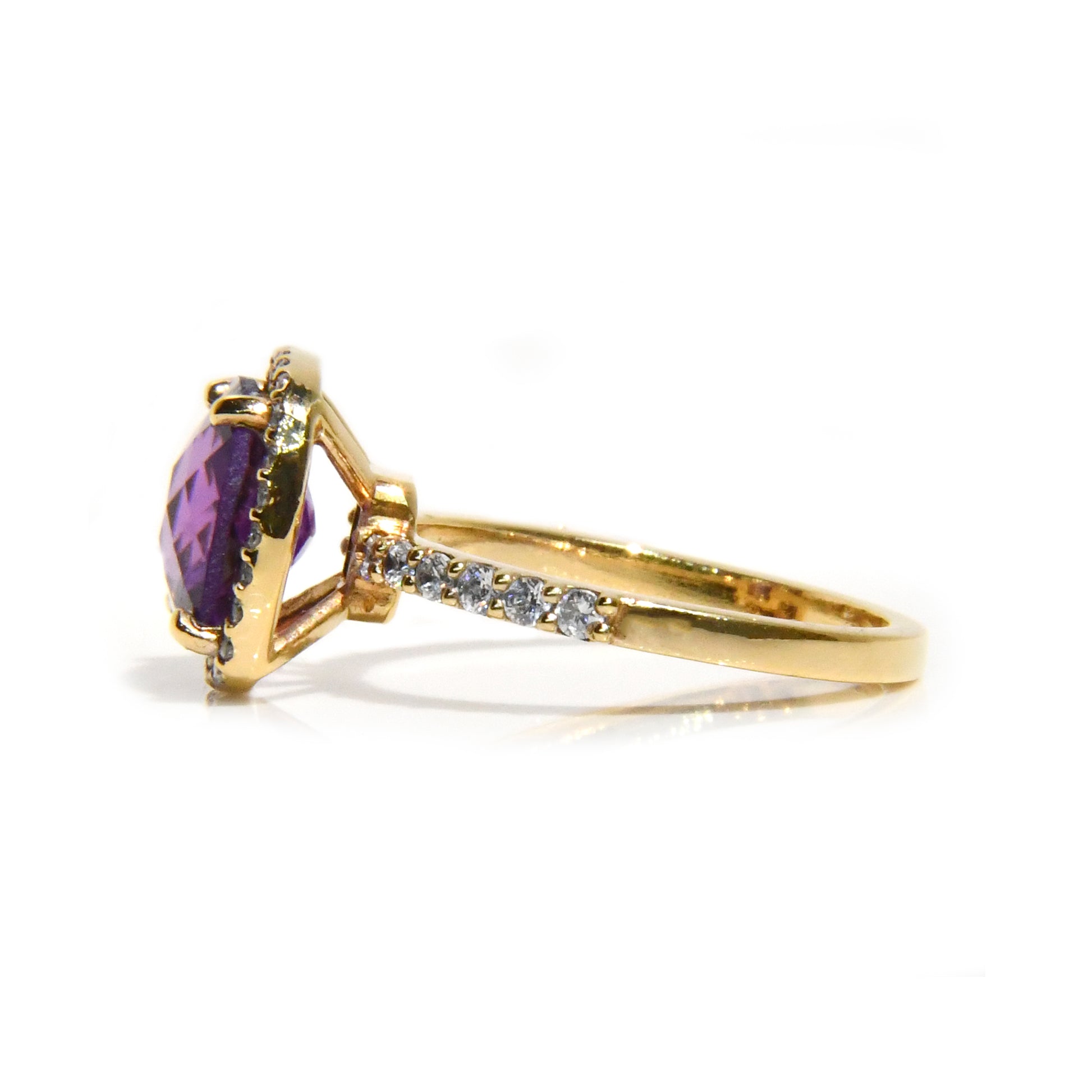 Una hermosa e impresionante amatista natural de 3.5cts con brillantes diamantes en el halo y los brazos del anillo.