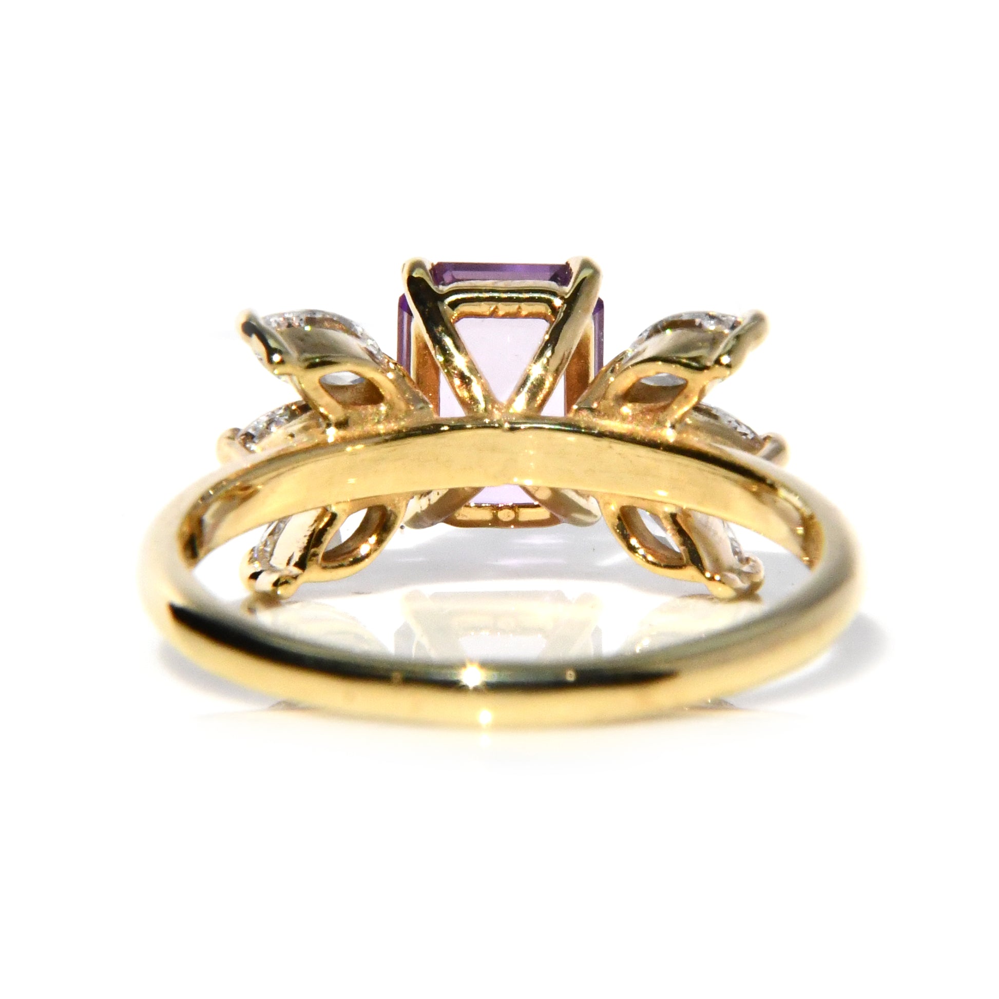- Una hermosa amatista central corte esmeralda de 8x6mm de 1.05cts.