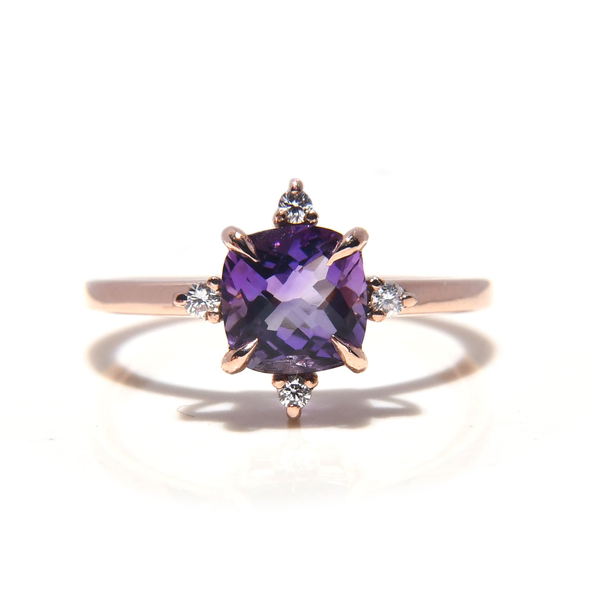 Anillo Roxy con Amatista Cushion de .92cts y Diamantes