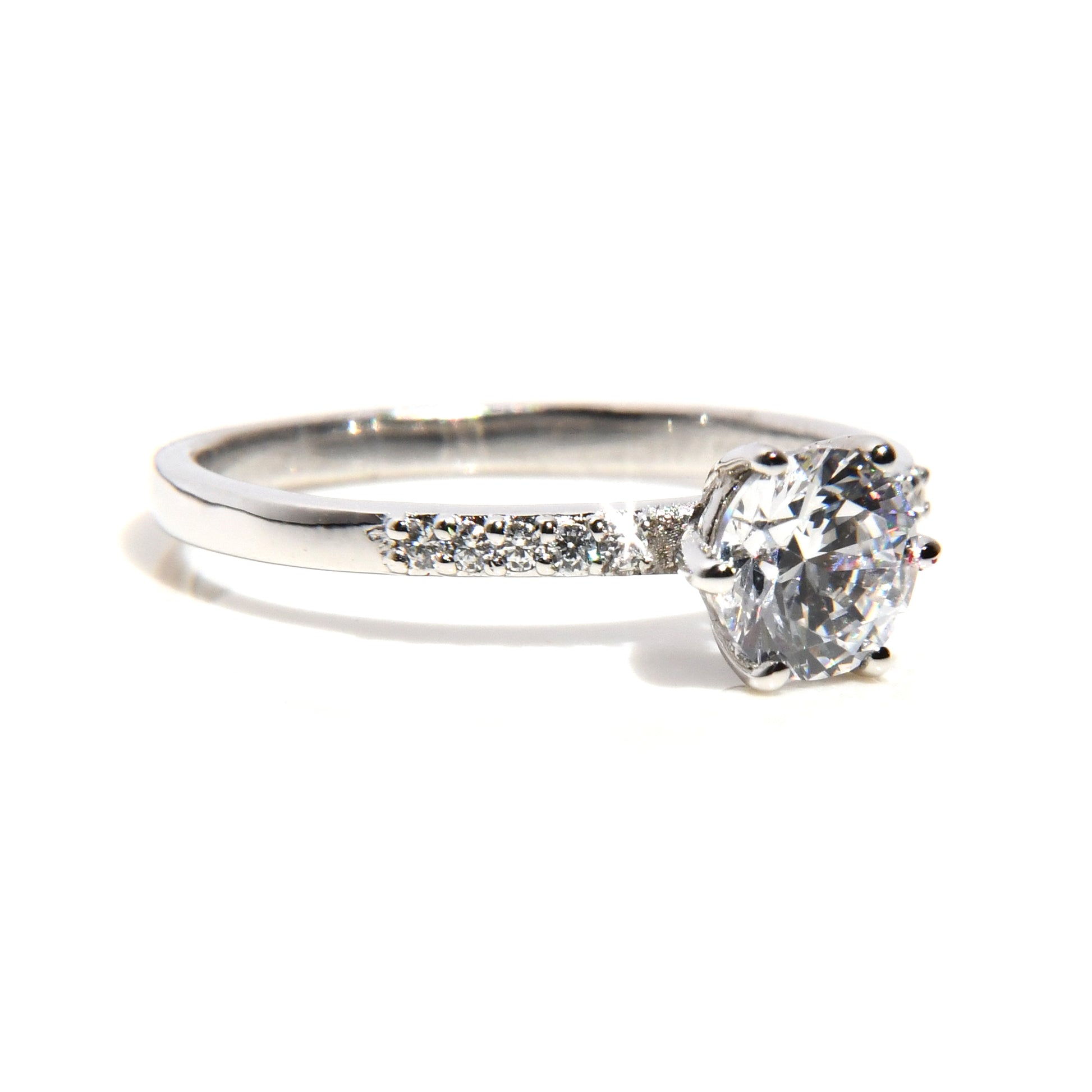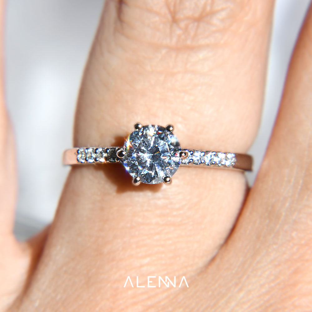 Anillo de Compromiso con Moissanita .80Cts y 10 Laterales