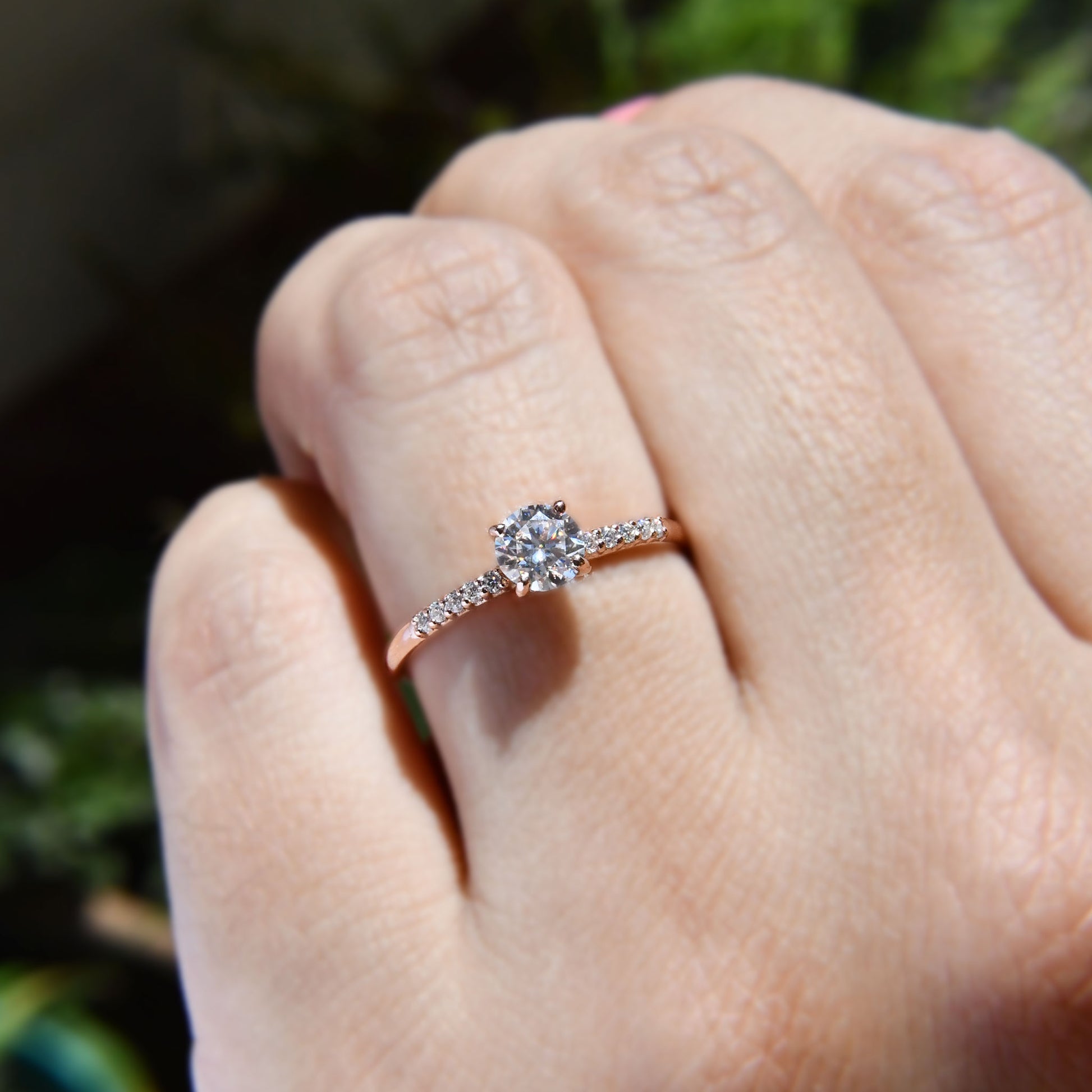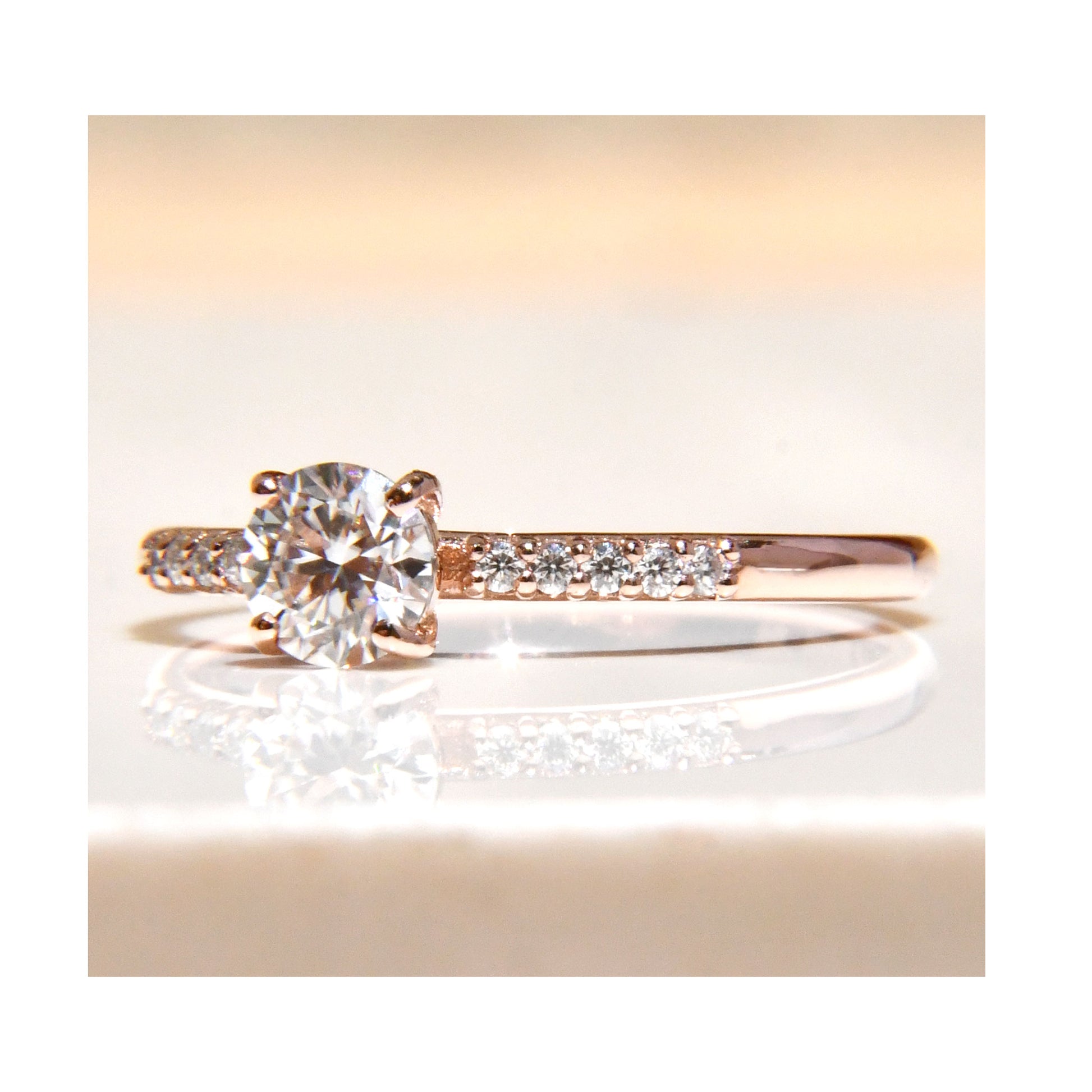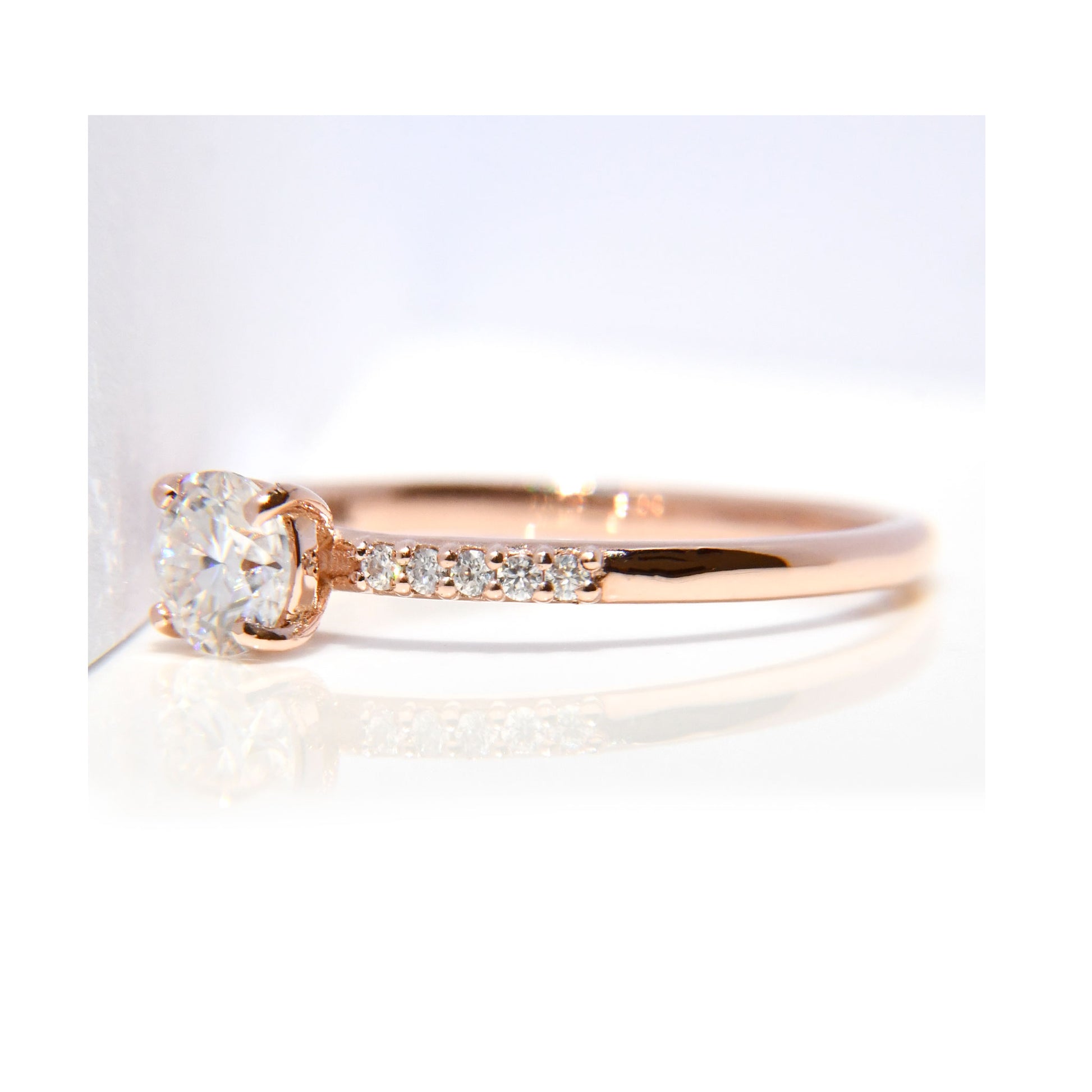 Anillo de Compromiso con Moissanita .50Cts y 10 Laterales