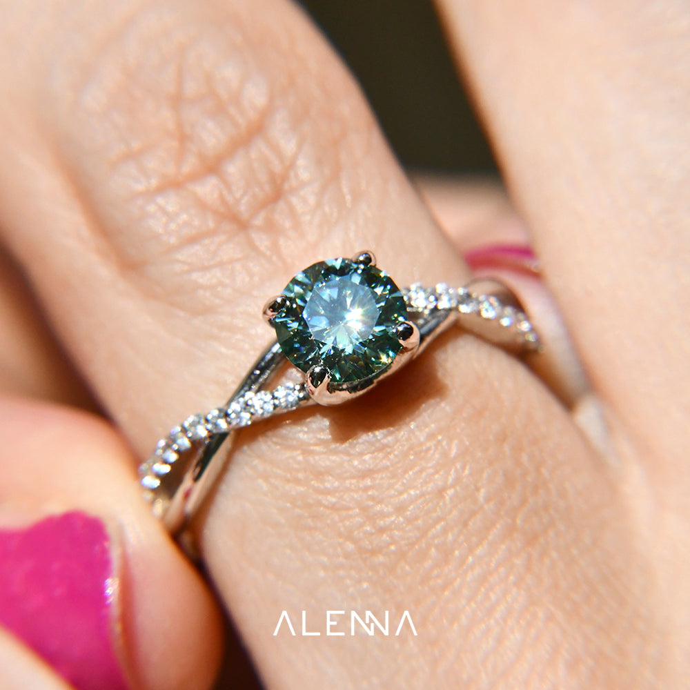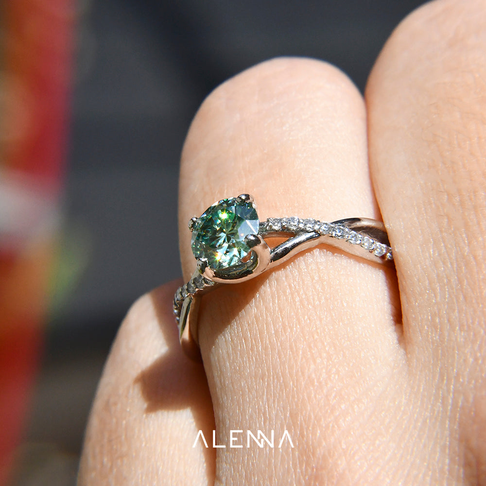 Anillo de Compromiso con Moissanita Verde 1Cts