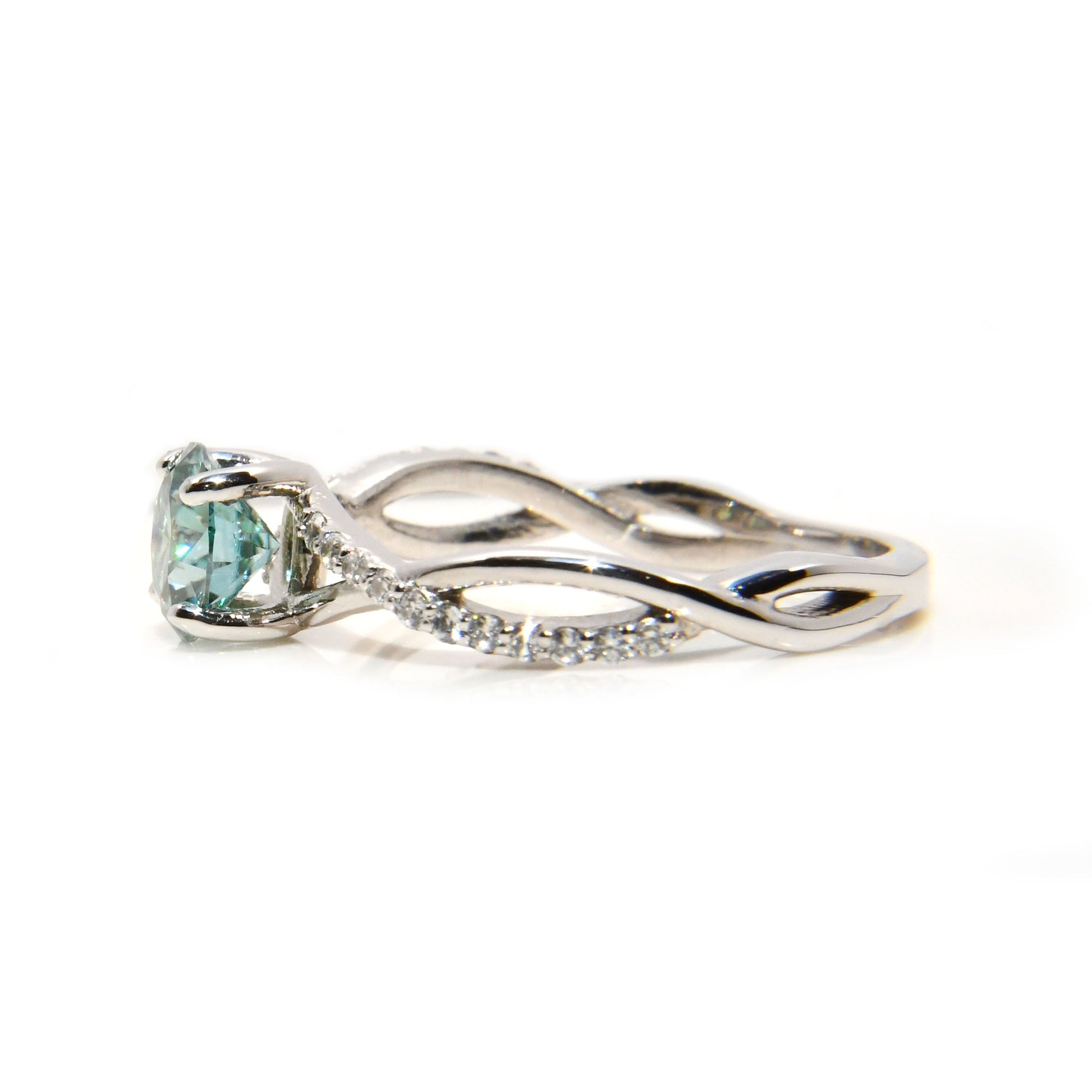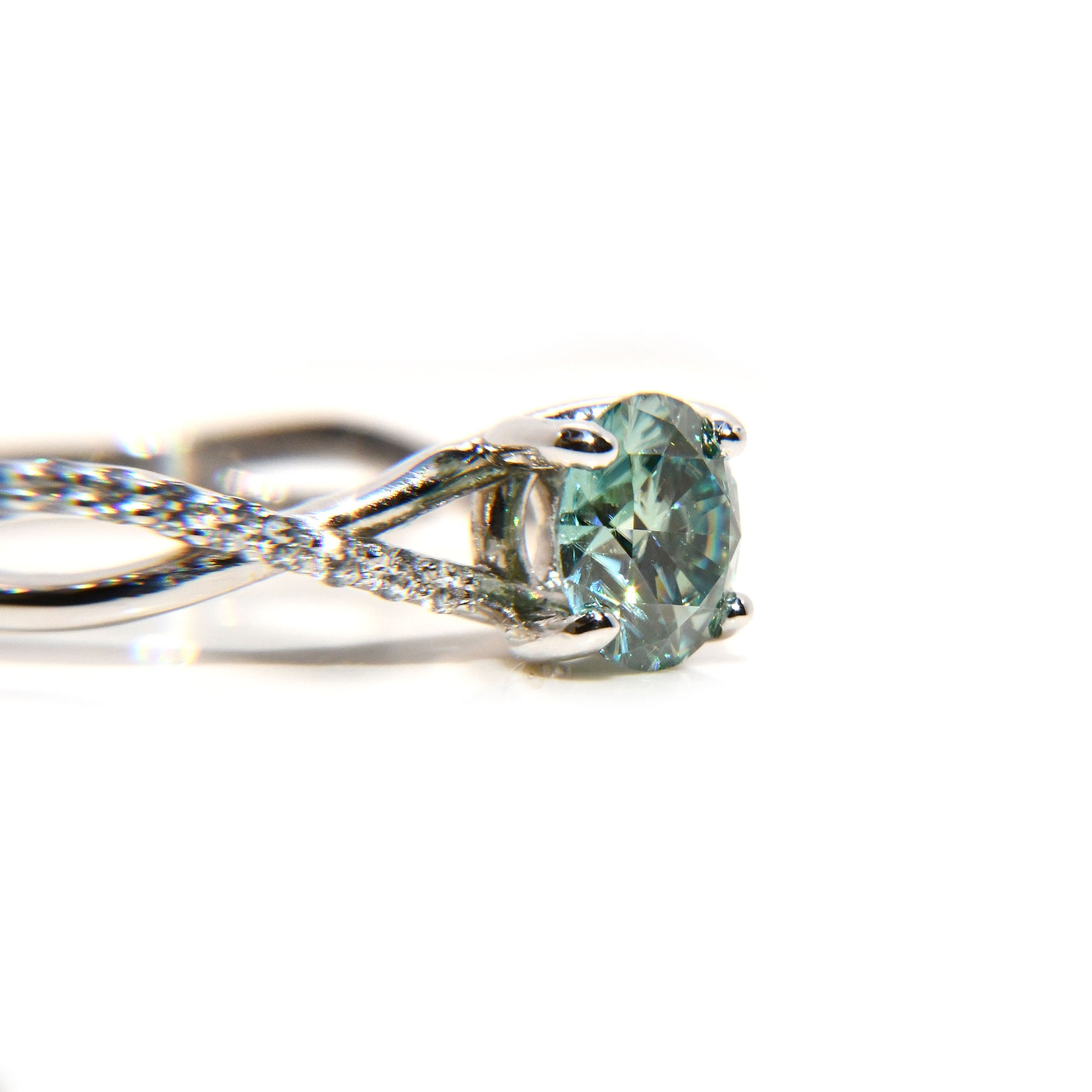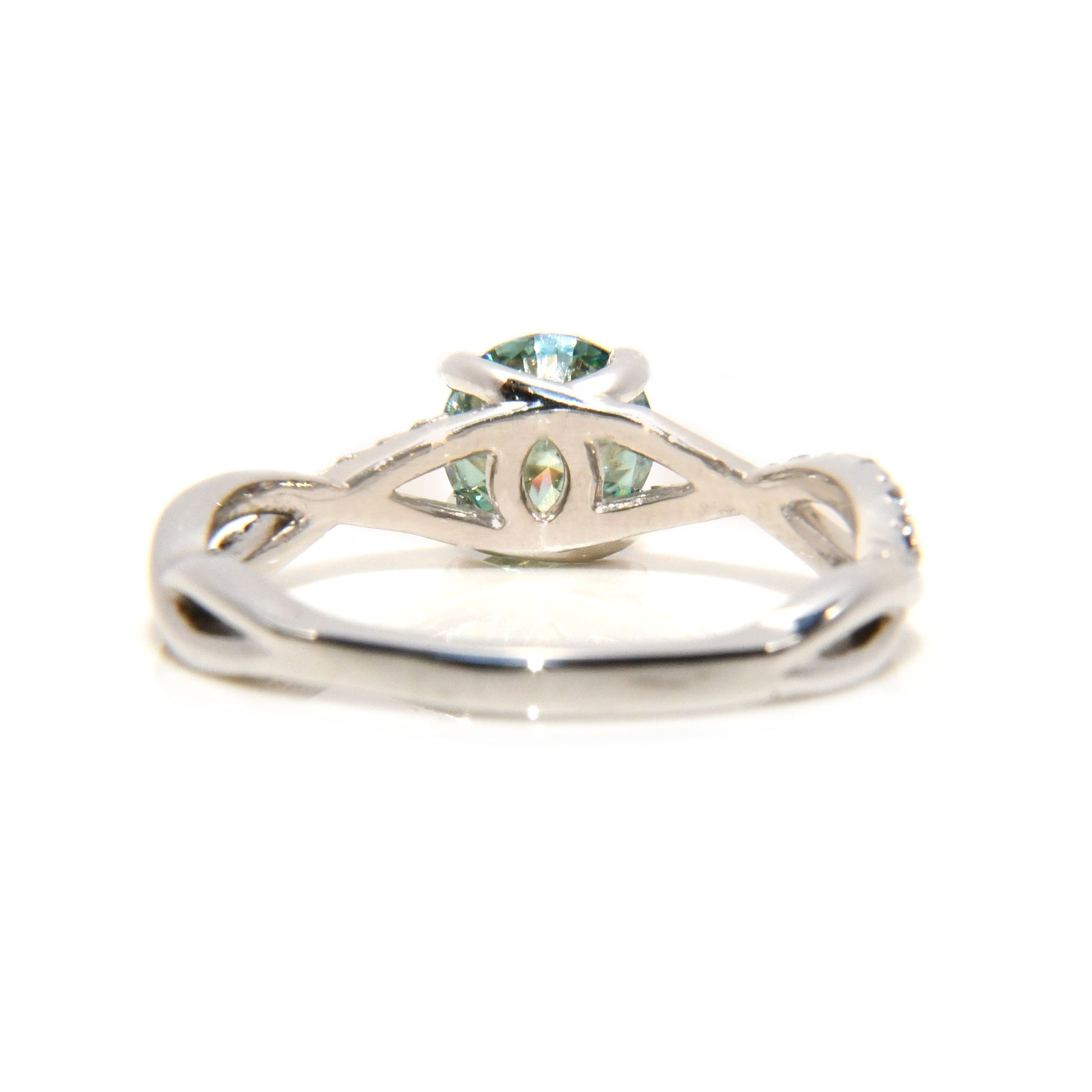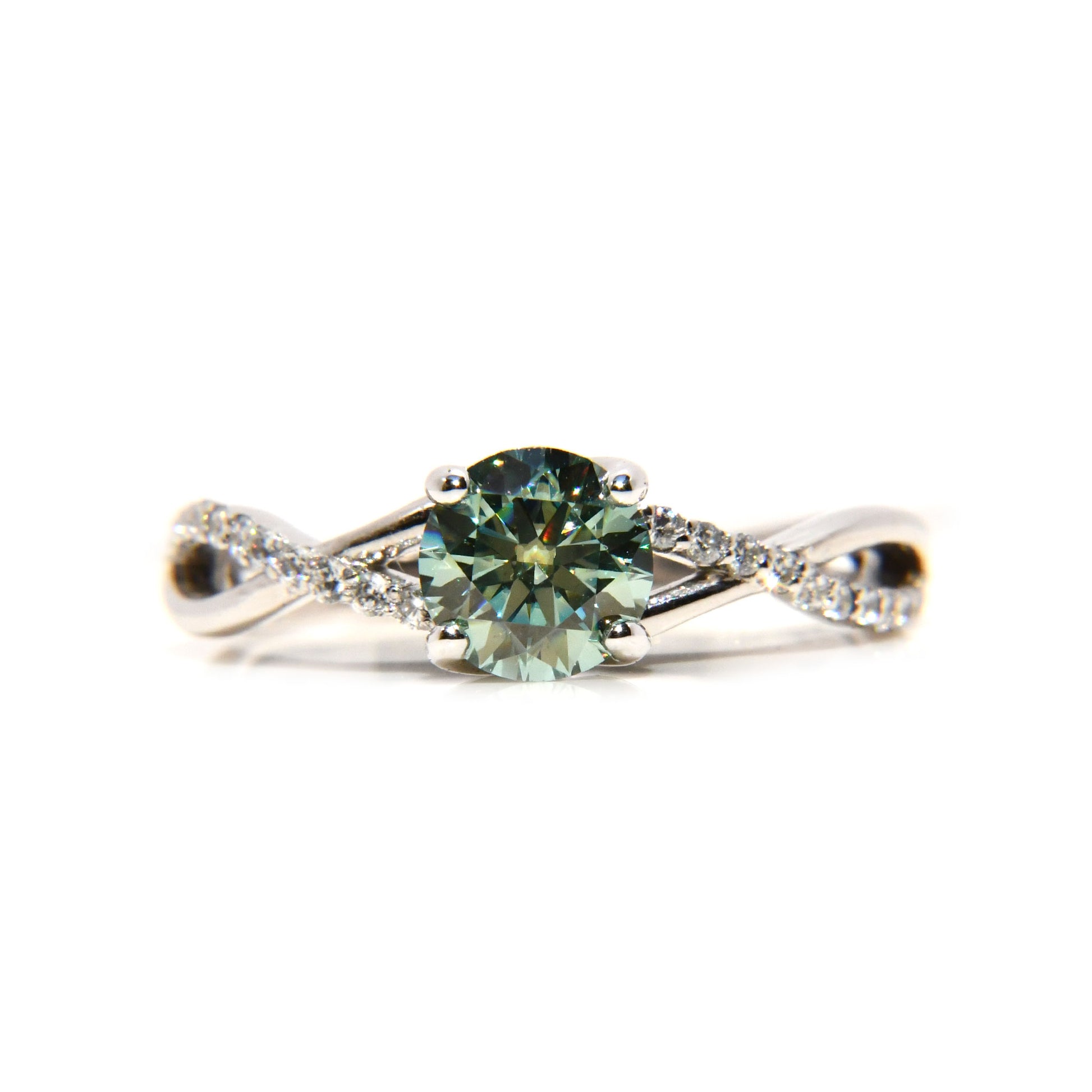 Moissanita central de color verde de 1 Cts corte brillante redondo.