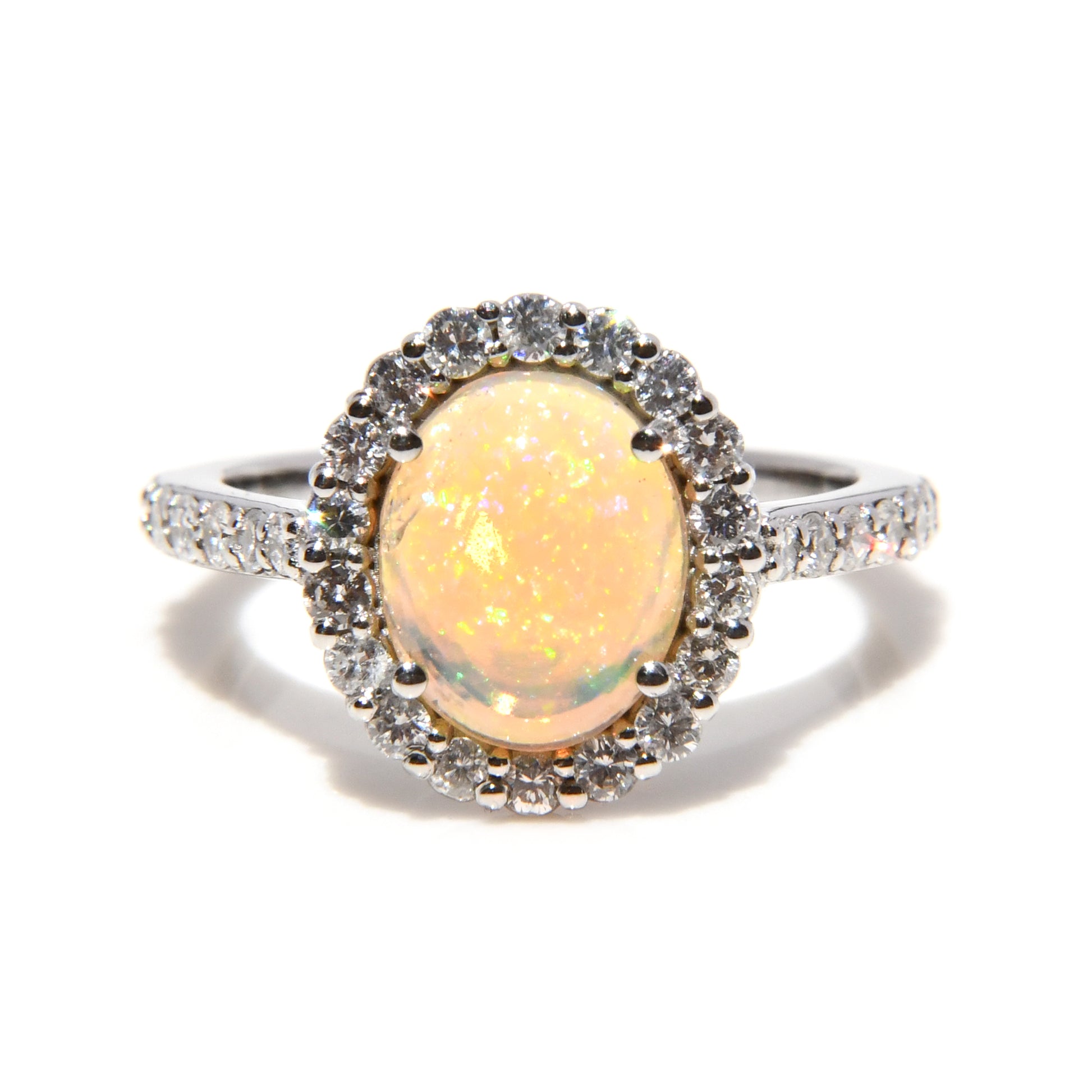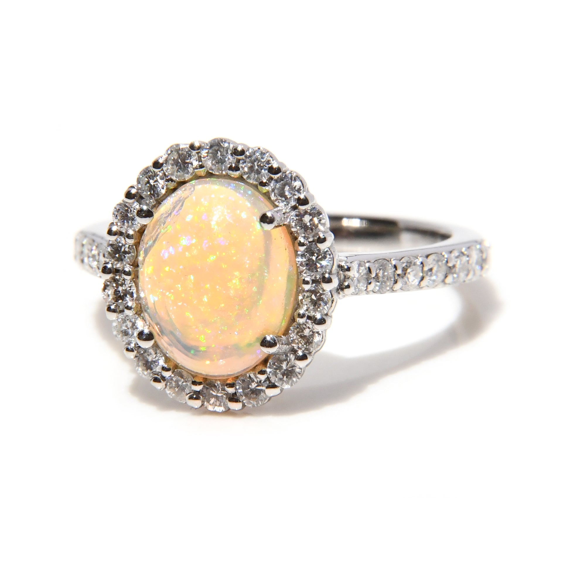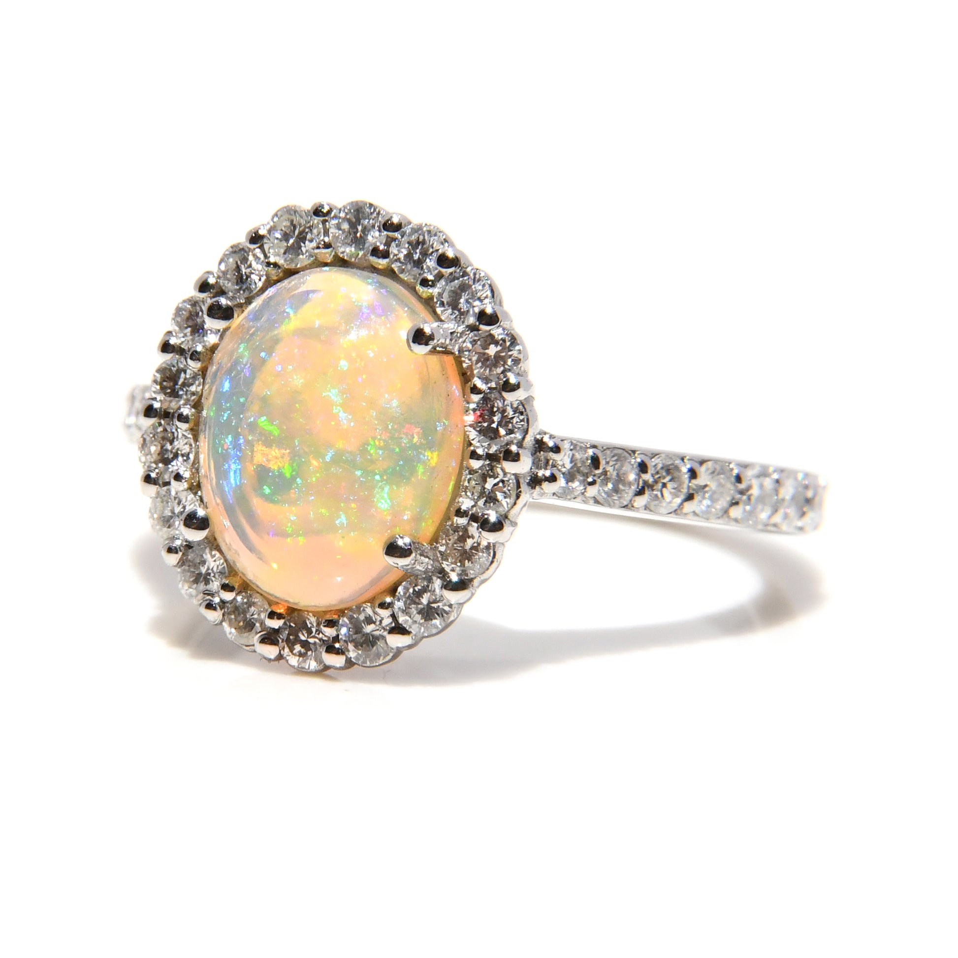 Anillo de Compromiso con Ópalo de 2cts y Diamantes