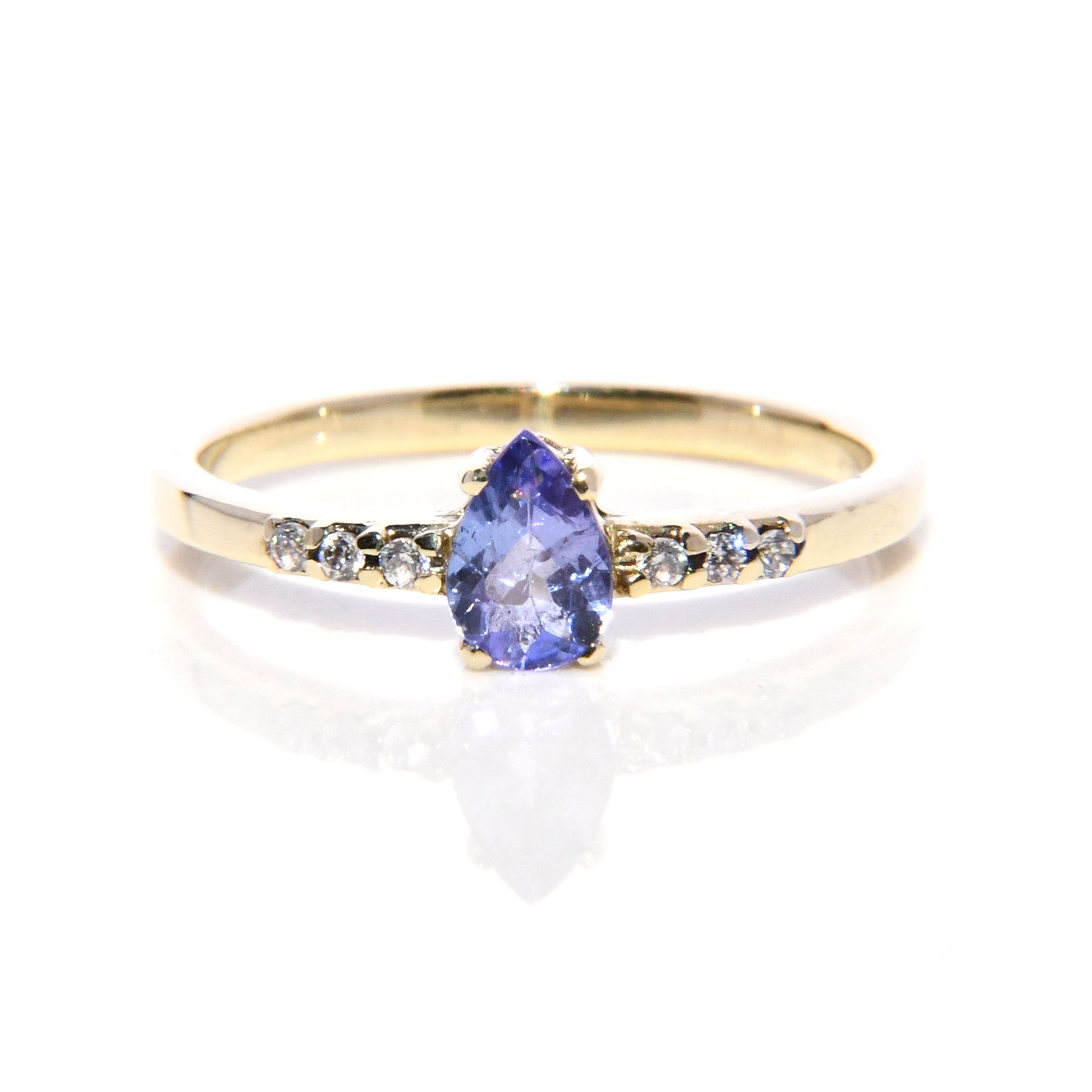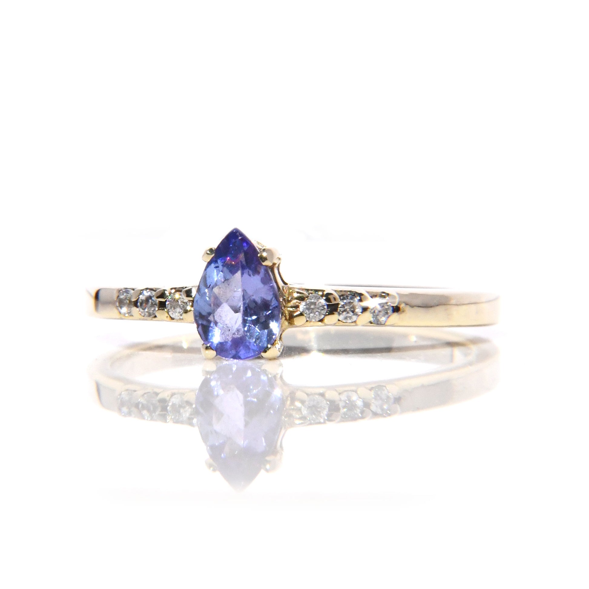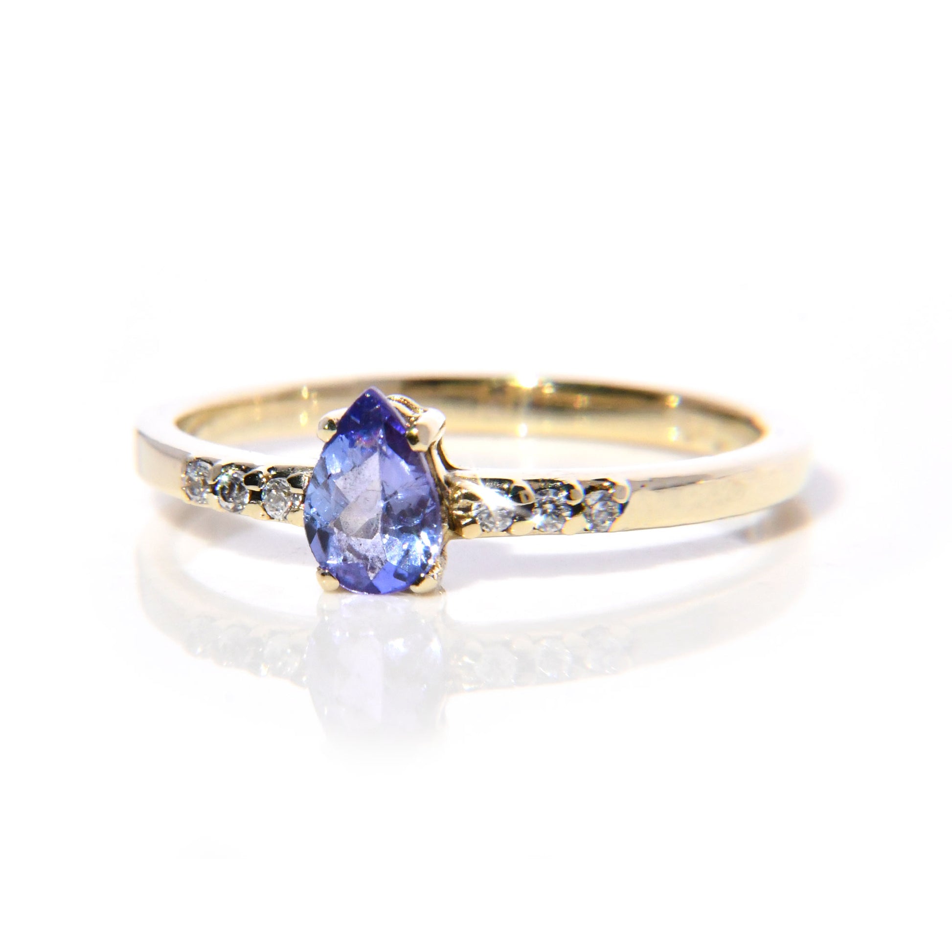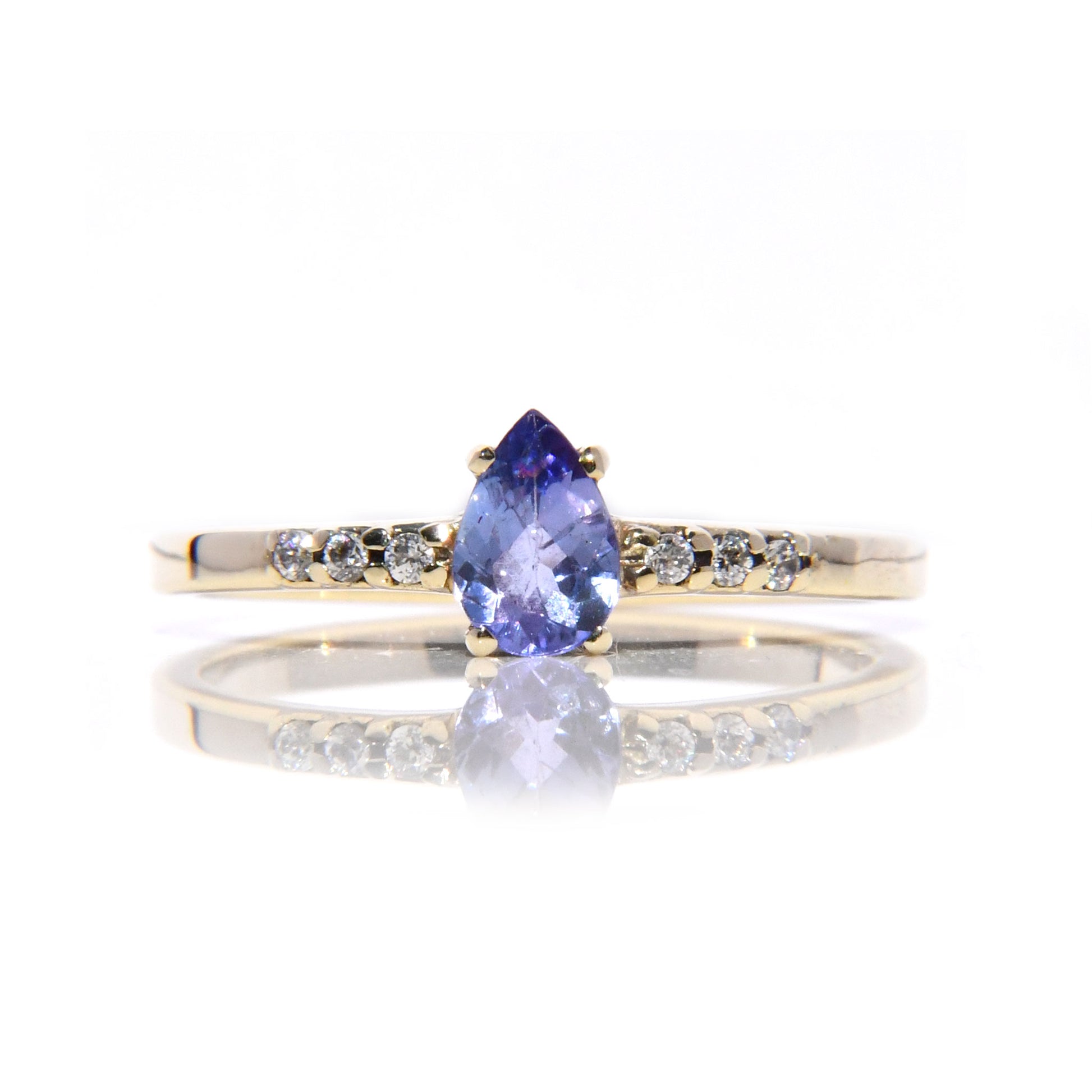 Anillo de Compromiso con Tanzanita corte Pera y Diamantes