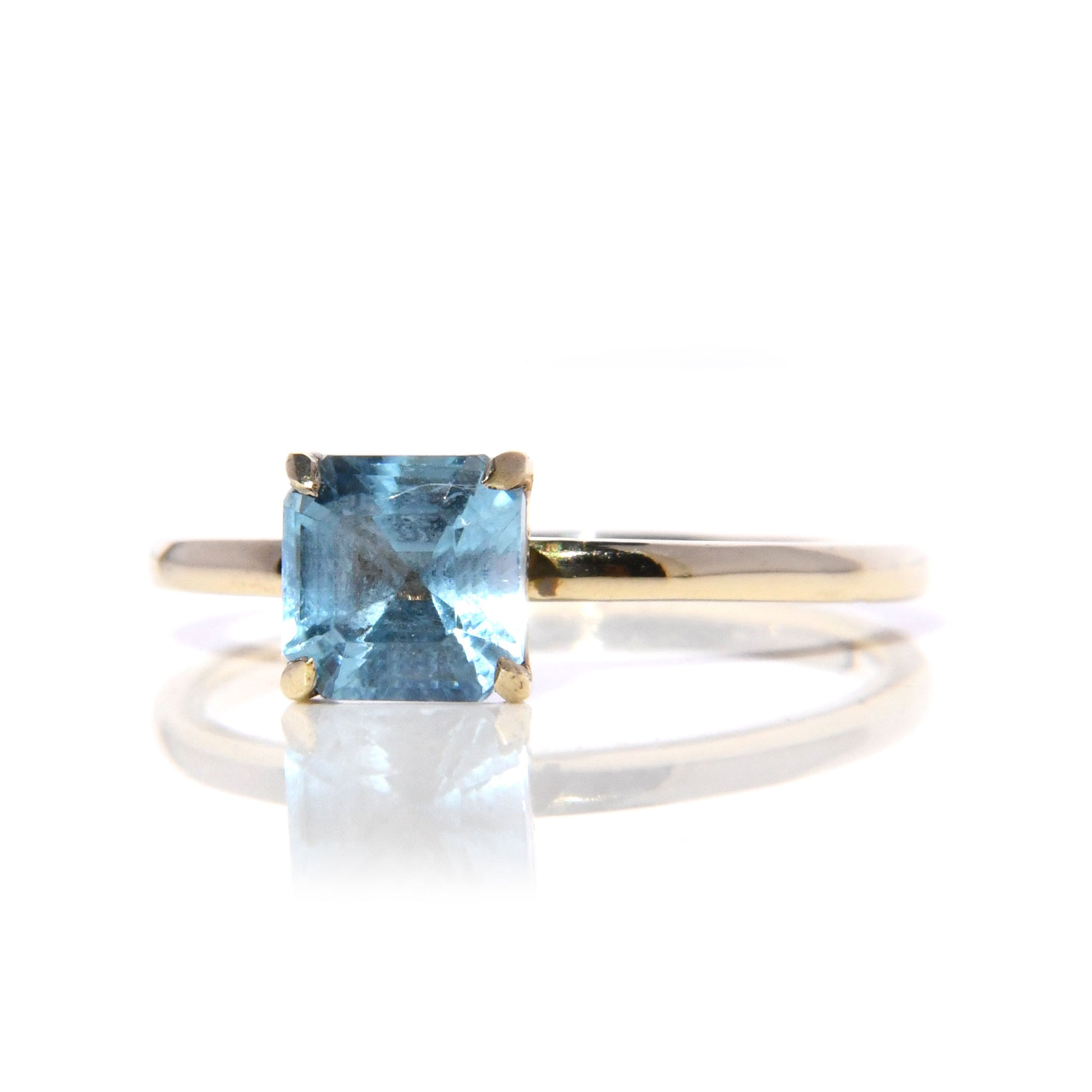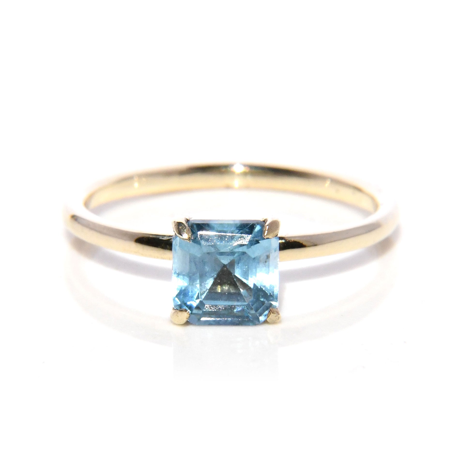 Anillo de Compromiso con Topacio Azul Cushion .80Cts