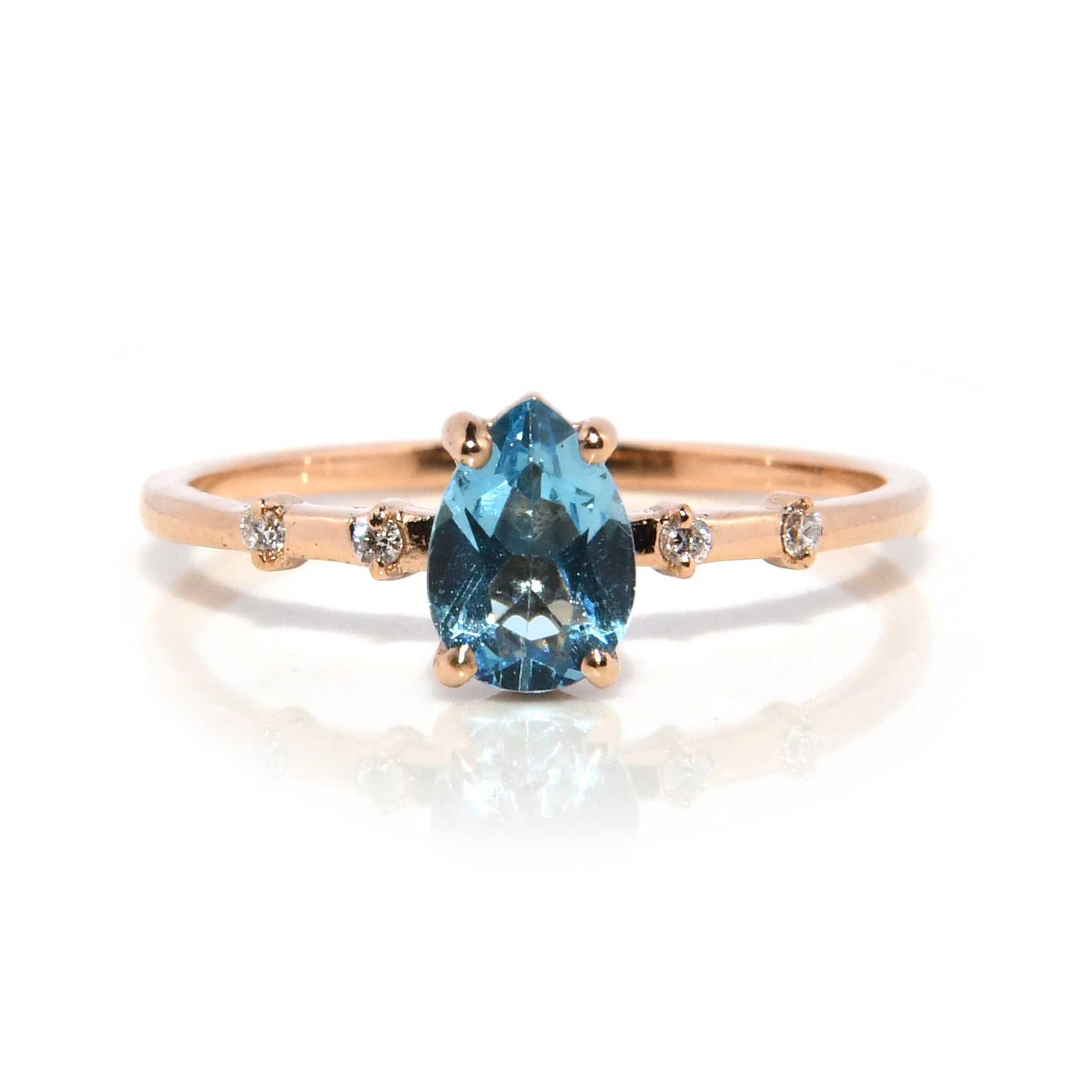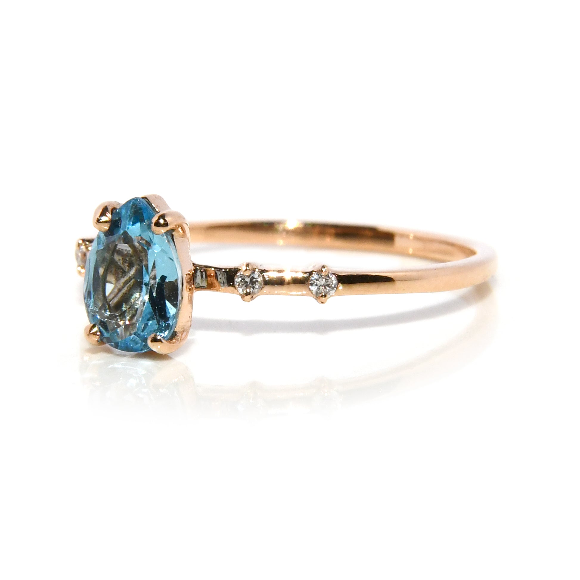 Un hermoso topacio azul acompañado de hermosos diamantes.