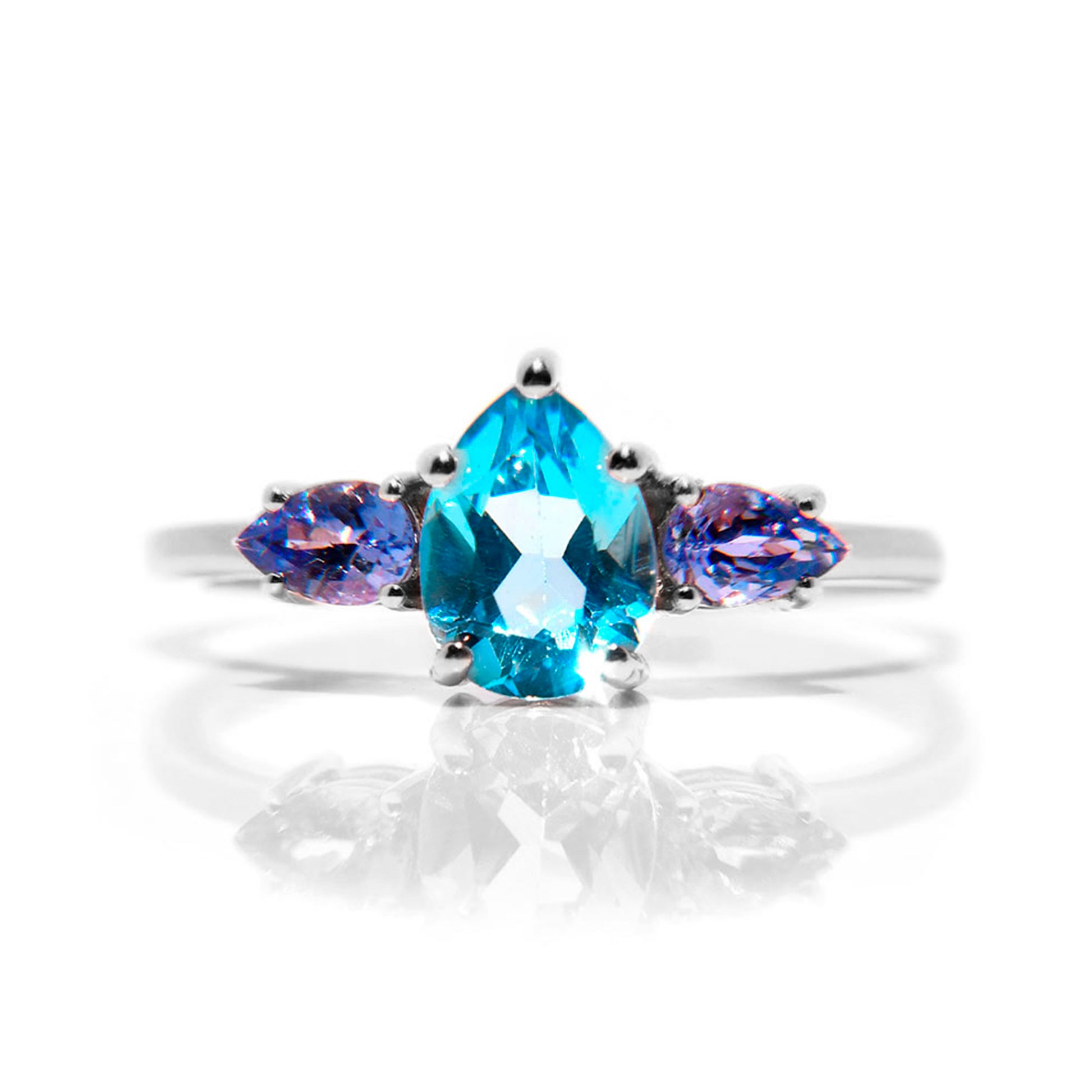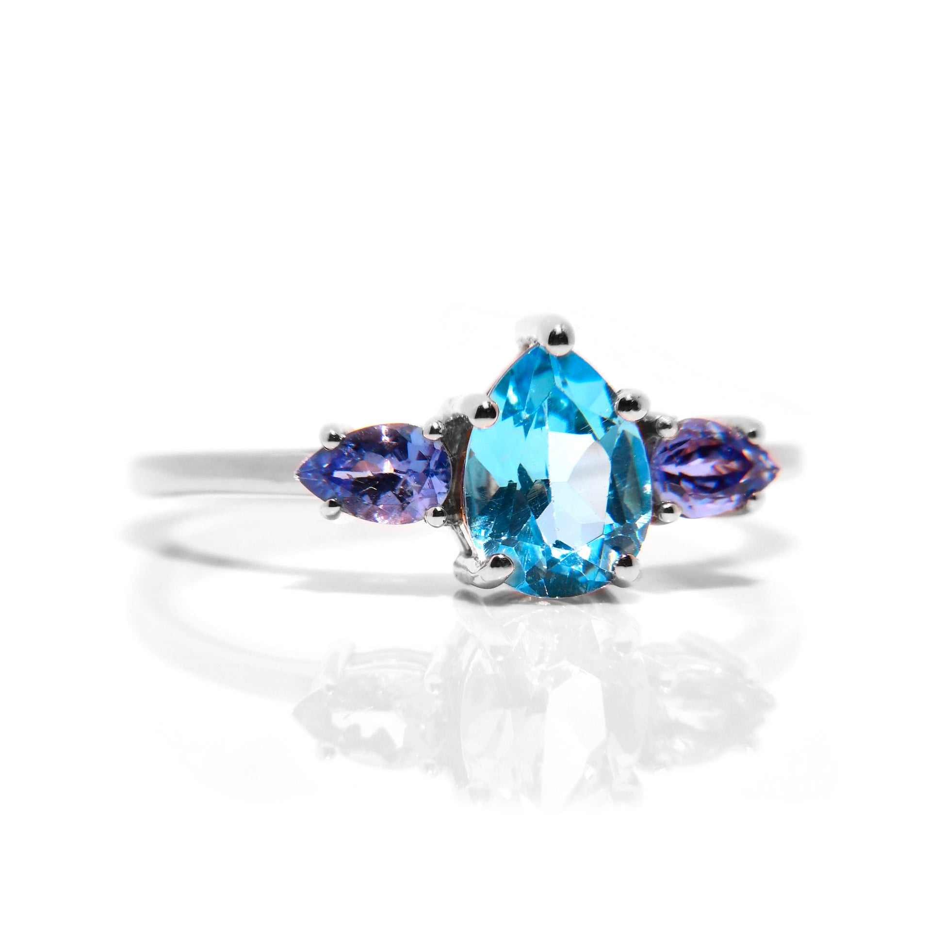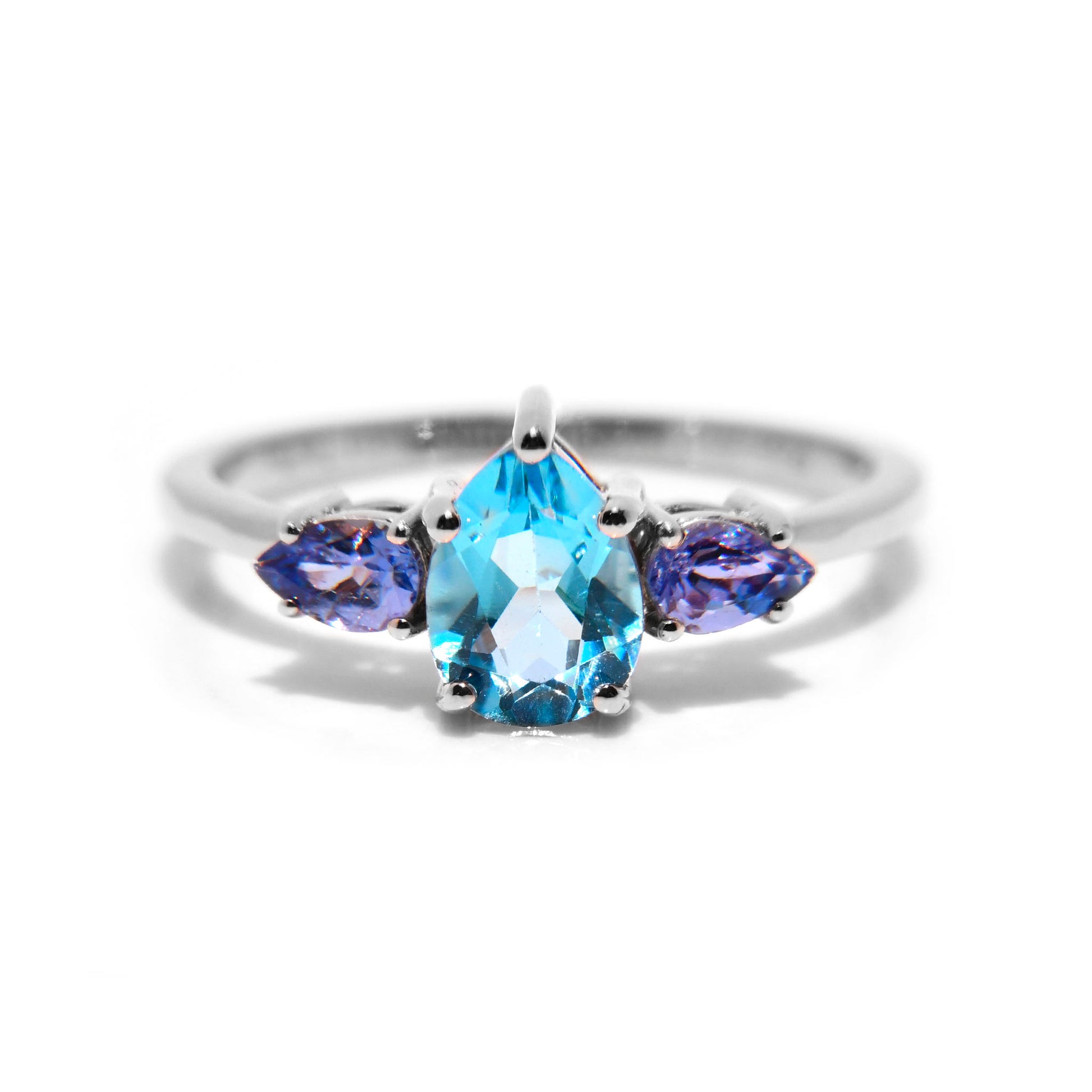 Anillo de Compromiso de Plata con Topacio Azul y Tanzanitas