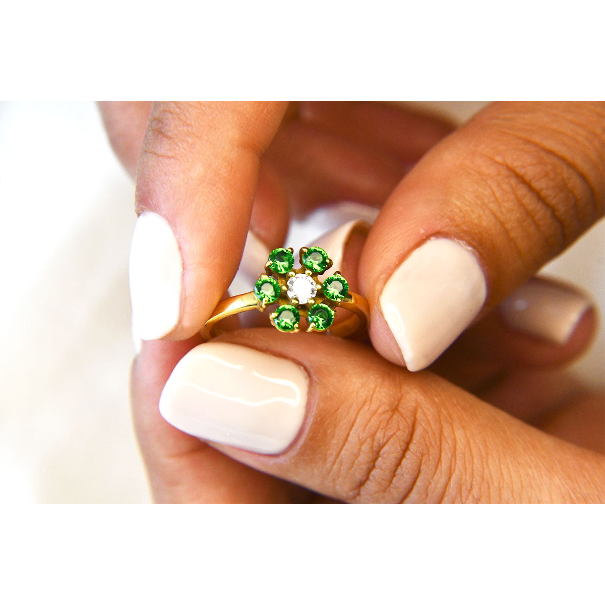 Anillo de Flor con Esmeraldas / Gema mes de Mayo