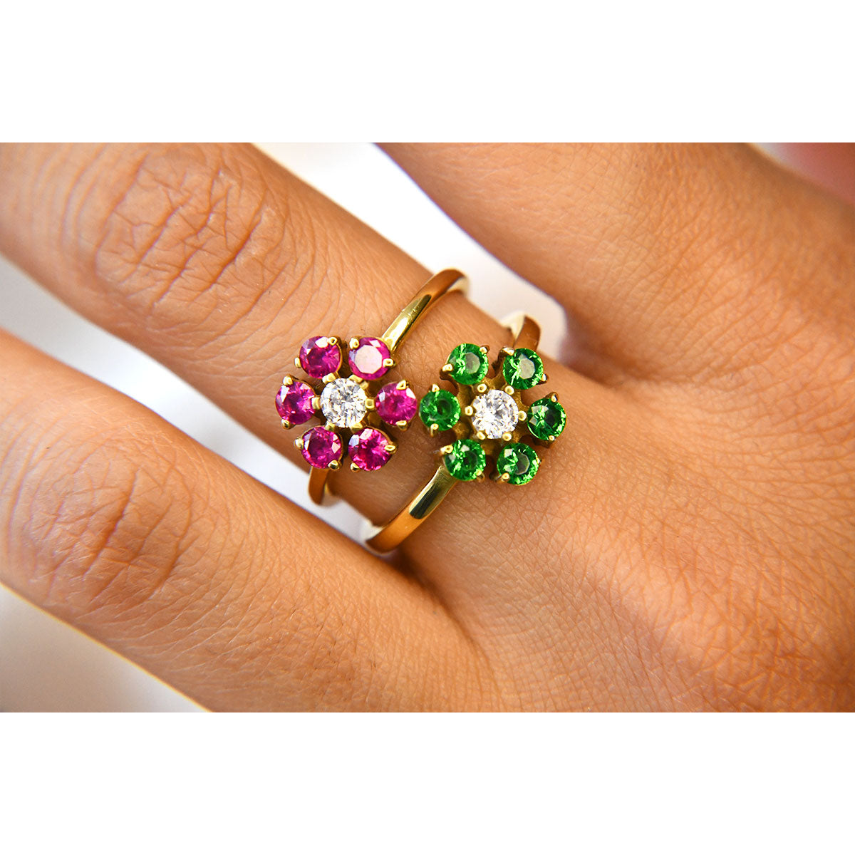 Anillo de Flor con Rubí / Gema mes de Julio
