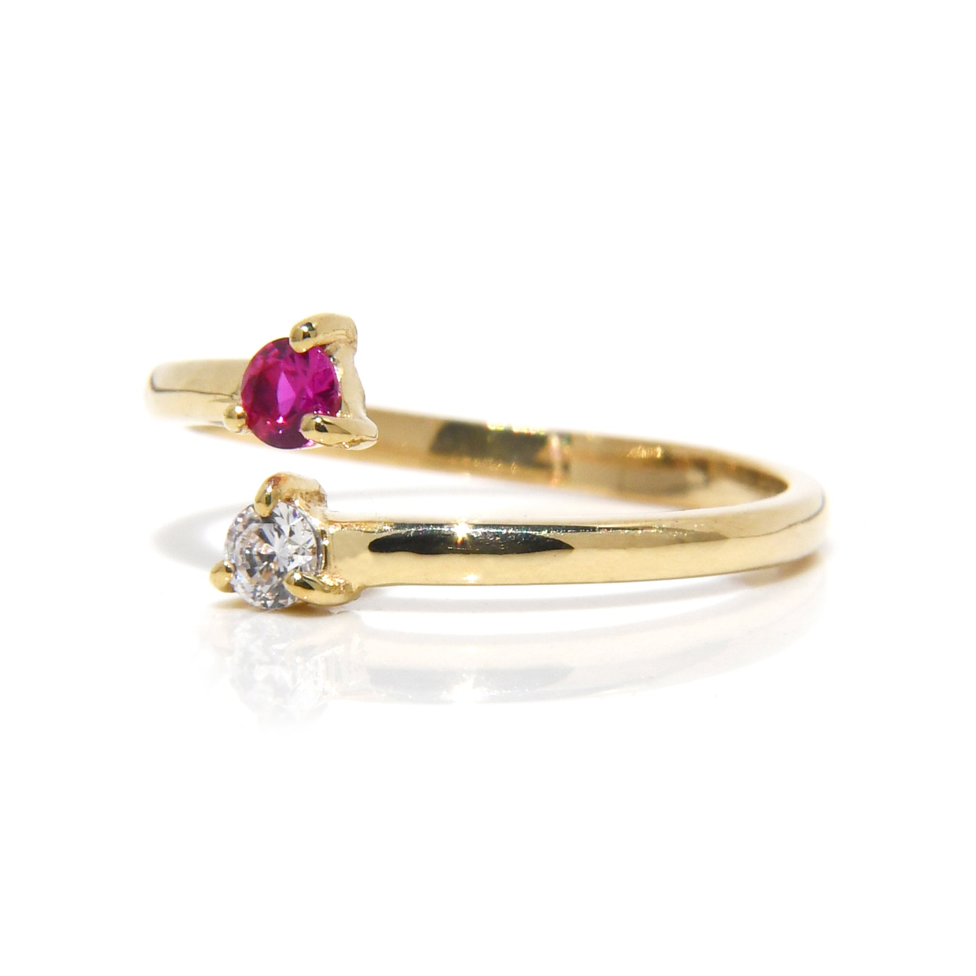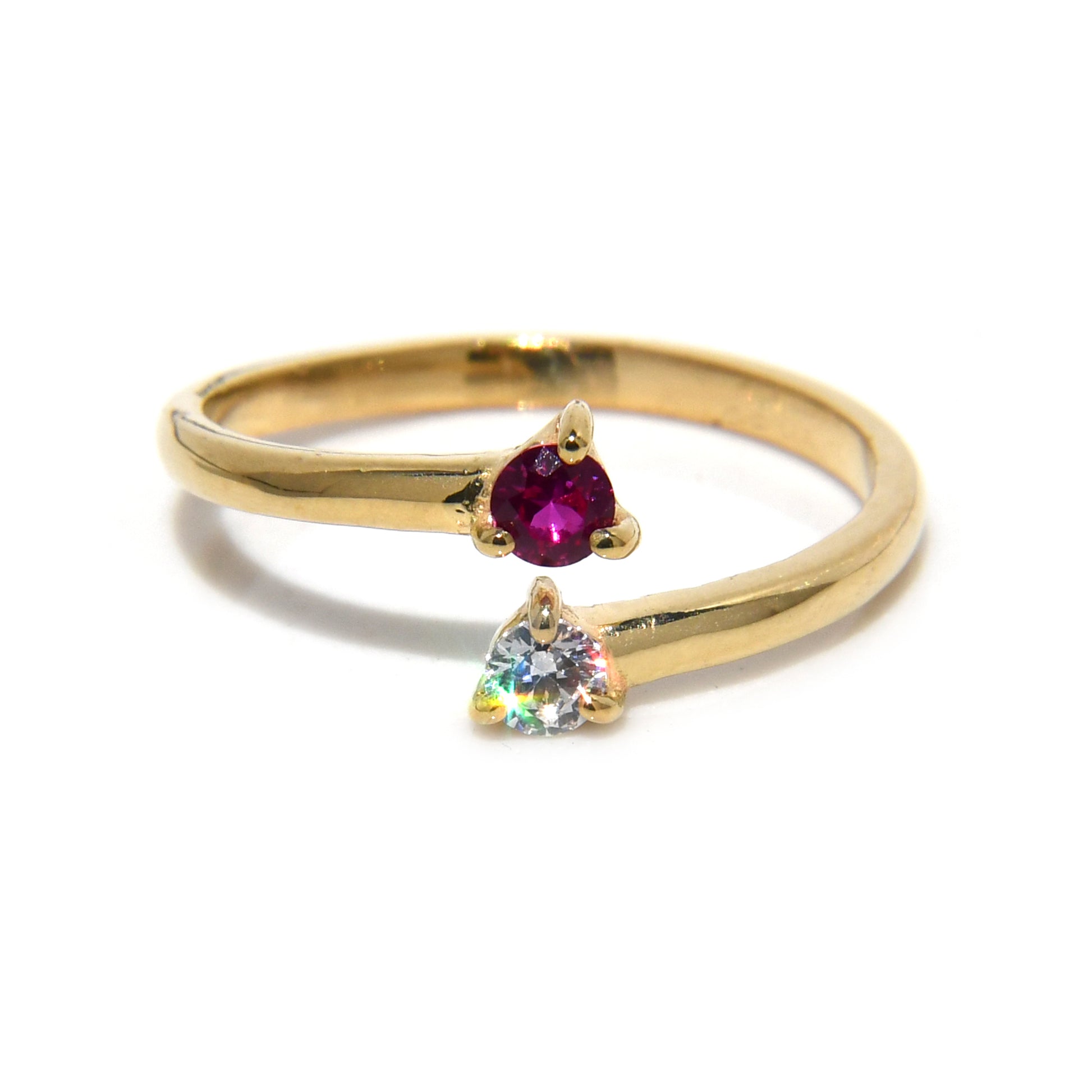 Anillo Espiral con Diamante y Rubí / Mes de Julio