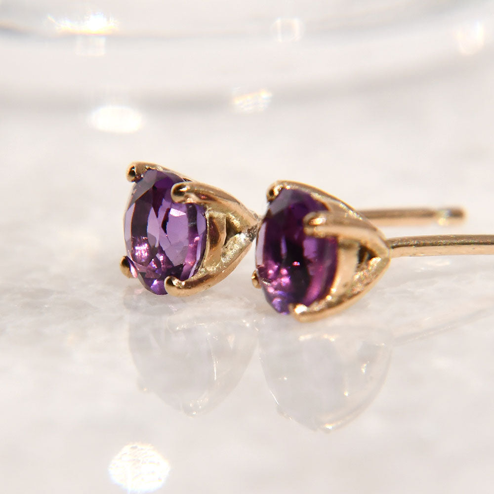Aretes con Amatistas naturales de .5ct cada una montados en oro sólido de 14 quilates.
