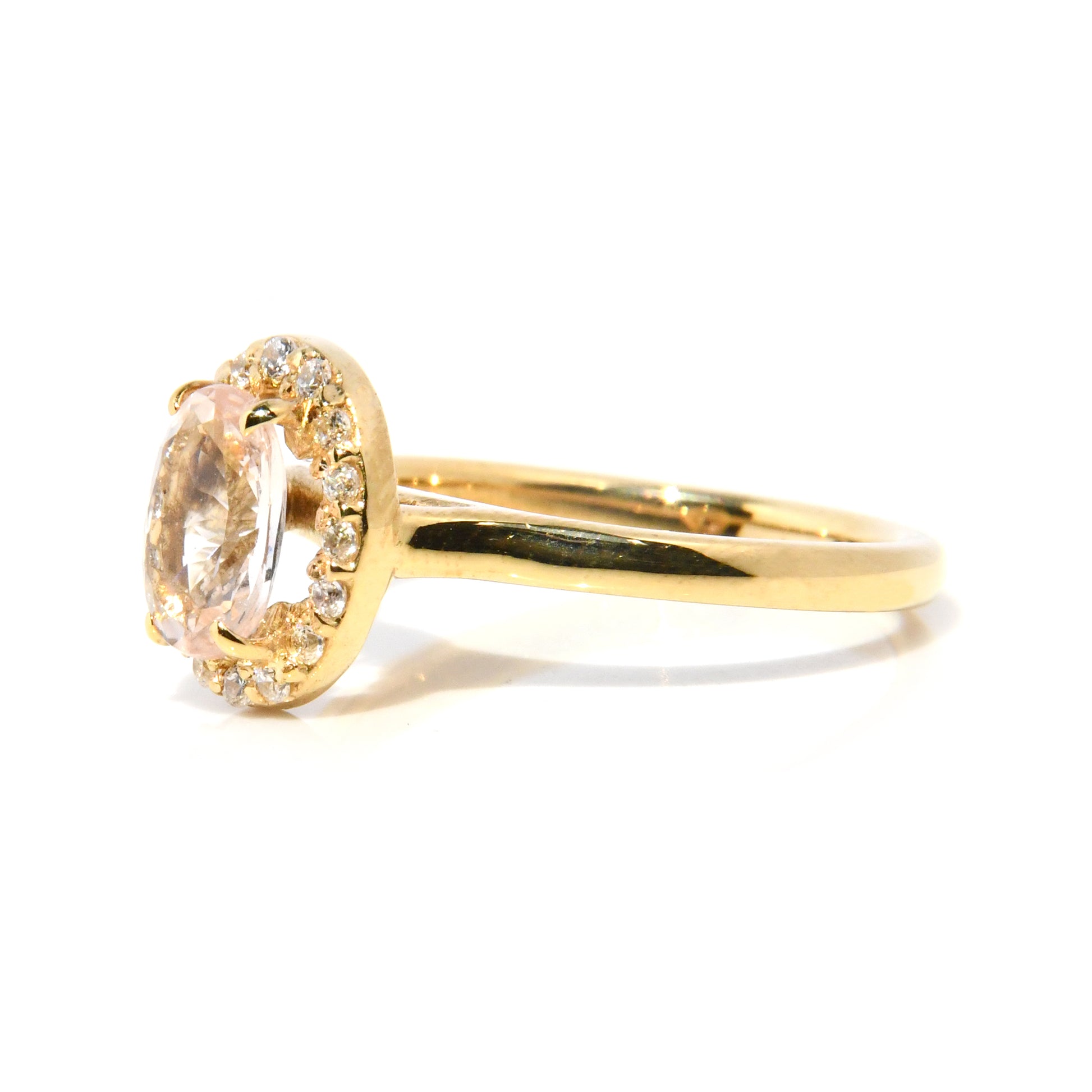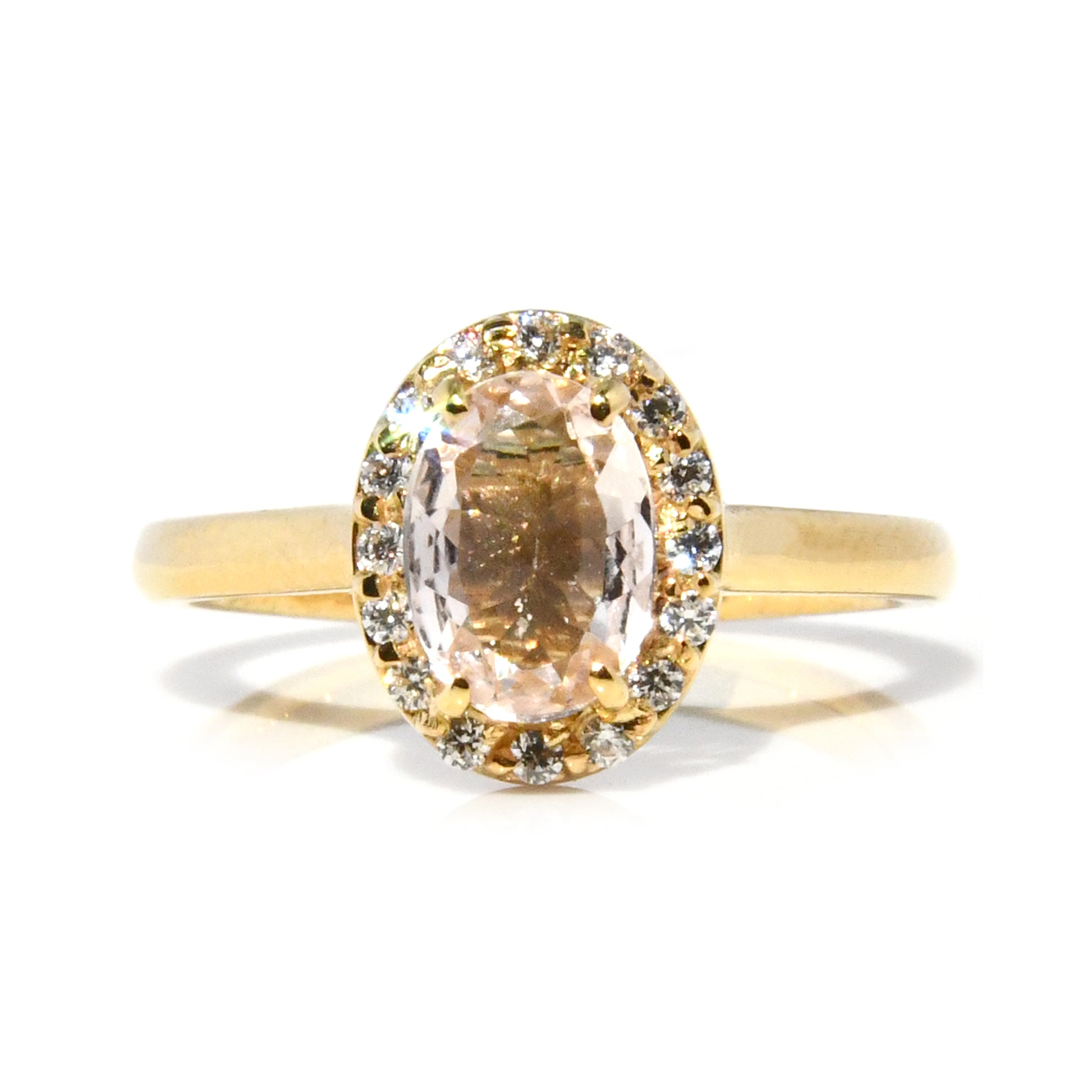 Una hermosa morganita natural de 8x5mm y 16 diamantes naturales.